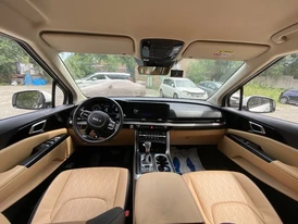 В базовых версиях салон отделан твёрдым пластиком и тканевой обивкой. В топовых появляется перфорированная кожа Nappa, деревянные вставки и матовые декоративные элементы. Руль — трехспицевый, увесистый, с логотипом Kia и кнопками.